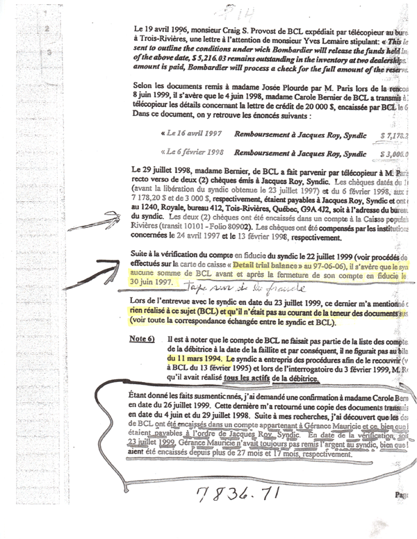 Des chèques encaissés jamais déclaré, on fait des plaintes, rapport Nollet la conclusion en bas ,mais on ne fais jamais rien.